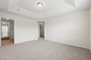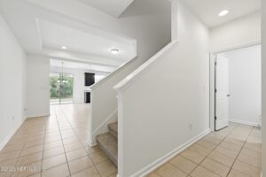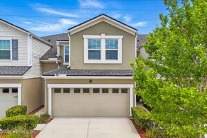 This move-in ready 3-bedrm, 2.5-bath townhome with a 2-car garage offers recent updates including brand-new carpet & fresh paint inside & out. The roof has been recently replaced, & a water softener is included for added value.This floorplan offers a unique courtyard-style foyer entry into a thoughtfully designed floor plan w/tile flooring on the main level. The kitchen features 42'' cabinets w/crown molding & a cabinet bump-up, a prep island bar-top that opens seamlessly to the family and dining areas—perfect for entertaining. The family rm showcases a tray ceiling and offers generous under-stair storage, plus a convenient powder bath for guests.Upstairs, the split bedroom layout provides privacy for all. 2 secondary bedrooms share a bath, while the owner's suite impresses w/ an architecturally inspired ceiling, a lrg walk-in closet, and a spacious en-suite w/ dbl vanities. The laundry room is also upstairs for easy access. Enjoy all of Oakleaf Plantation's sought-after amenities! This property is conveniently located to Plantation Oaks Elementary, Oakleaf Junior High School and Oakleaf High School.